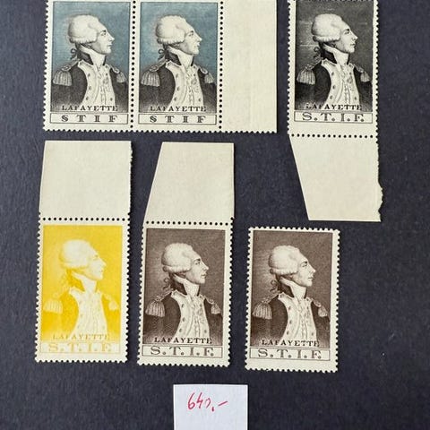 Timbre(r) i TB-stand, se billeder. En sjælden gruppe på 5, der holder sammen. Disse frimærker er en del af 'Palissy'-serien. For specialister, meget sjældne.