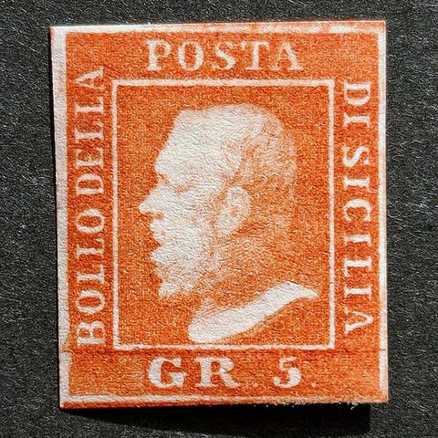 Sardinien - 40 c. 16Db vermilion mat lys mursten brugt i Sicilien med ducal annullering med palmeblade, fantastisk og perfekt frimærke, meget friskt, med store margener og godt bevaret i den sjældne farve, signeret og klassificeret.