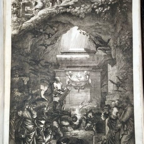Octavo: 2 uspecificerede blad, 202 sider, 1 uspecificeret blad og 7 foldede plader (forkert nummereret 5). Marmoreret kalveskind, forgyldt ryg med forhøjede bånd (samtidsindbinding). Chevremont, s. 14.
