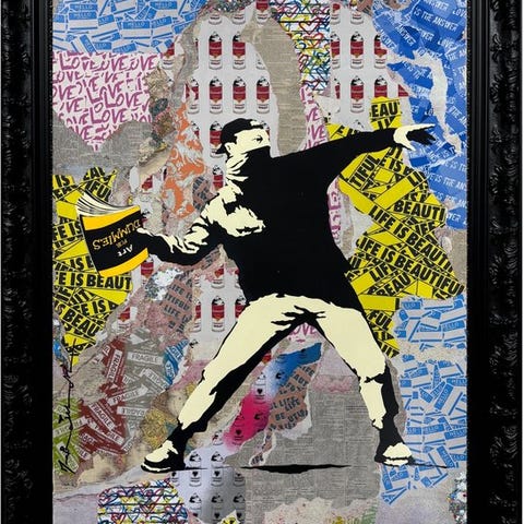 Originalt UNQ 1/1 Keep It Unreal af Mr Brainwash, 2025, med håndsigneret titel og teknikker i mixed media, dimensioner 76,2 cm × 55,8 cm, fremragende stand, oprindelse USA, vægt 0,9 kg, solgt af Galerie. Klik på den blå "gå til varen" knap, for at købe eller byde på denne vare. Den samlede pris vil blive vist inden du afgiver dit bud.