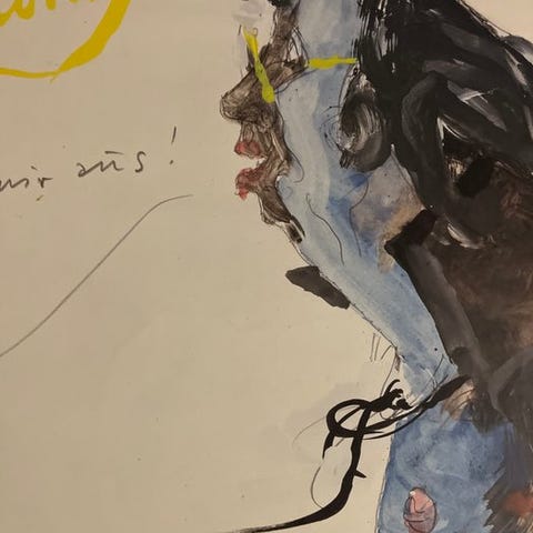 Dit arbejde er en eksplosiv collage af hastighed, oprør og visuel kraft, hvor ikoniske motorsportsbilleder smelter sammen med en rå, næsten punket holdning. I centrum står et karakteristisk billede af Steve McQueen – den legendariske skuespiller og racerkører – i raceoverall, der modigt viser V-tegnet. Tegnet, selvom det historisk set har været tvetydigt i betydning, præsenteres her tydeligt som et symbol på oprør og nonchalance.