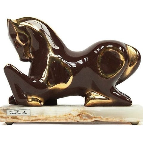 Vi præsenterer en smuk bronzefigur af kunstneren "Juan García Ripollés". Kunstneren blev født i 1932 i Valencia. Figuren er tituleret "TENTATION" og er en stor figur på 54 cm i højden, 38 cm i bredden og vejer cirka 25 kilo, som det ses på billederne. Disse figurer er meget svære at finde på markedet på grund af størrelsen, og fordi bronzefigurene af kunstneren Juan García Ripollés er meget eftertragtede blandt kunstsamlerne. Det drejer sig om en serie på 8 enheder, hvor denne er nummer 4 af 8. Det er en stor chance – lad den ikke gå fra dig.