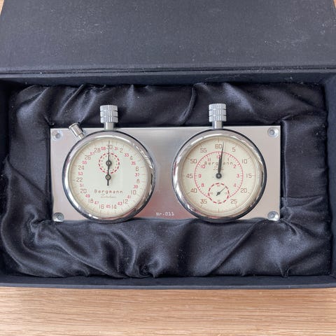 Ur, Jaeger, Fransk/Schweizisk ur med 8 dages værk fra 1920'erne til instrumentbrædt på veteranbil. Opsat på sokkel. Går fint men ingen garanti gives., Kan fremsendes med GLS. Pris oplyst er eksl fragt.