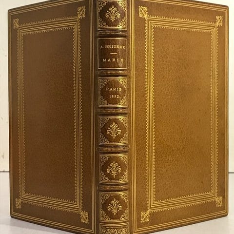 Den originale udgave af Emaux et Camées af Théophile Gautier, fransk digtsamling på 106 sider, udgivet i Paris i 1852, opbindings i oker halvskind med gyldne detaljer og blå titellap, i meget god stand. Klik på den blå "gå til varen" knap, for at købe eller byde på denne vare. Den samlede pris vil blive vist inden du afgiver dit bud.