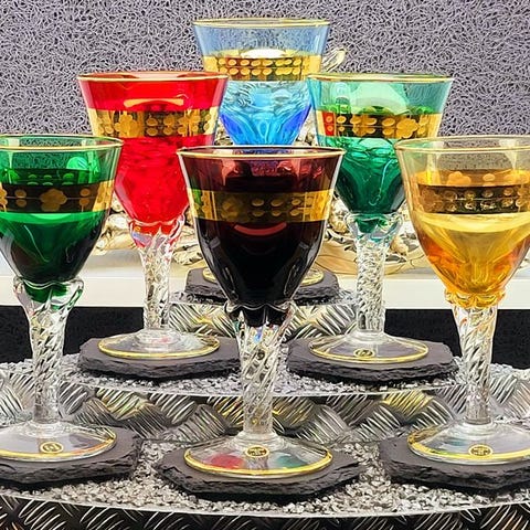 Ricovert med guld- og krystalglaslamina. Perle i blomsterform i krystalglas og guld.