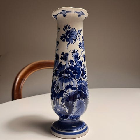De vaas er i fremragende stand, med let og jævnt craquelé, der passer til alder. Et dekorativt og samlerværdigt stykke Delfts Blauw fra midten af det 20. århundrede.