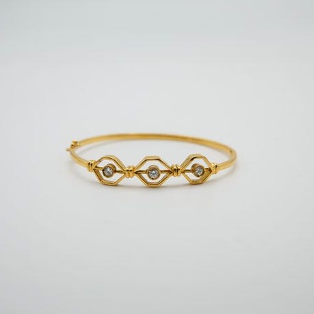 Kvindearmbånd lavet af 18 kt gult guld med N. 6 diamanter, hver 0,01 ct, i alt 0,06 ct, brillantklipning, G farve, SI1 klarhed. Lås med karabinlås.