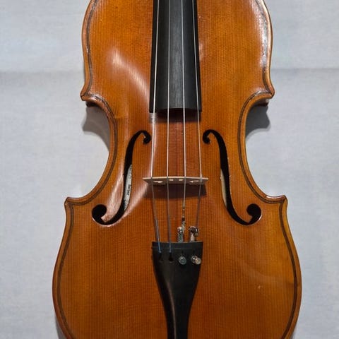 Fuldt størrelse viola (4/4) mærket Rocca Enrico fu Giuseppe, testet og funktionel, i rimelig stand med reparerede sprækker, af træ, vægt 0,6 kg, inklusive strenge og hakekrog. Klik på den blå "gå til varen" knap, for at købe eller byde på denne vare. Den samlede pris vil blive vist inden du afgiver dit bud.