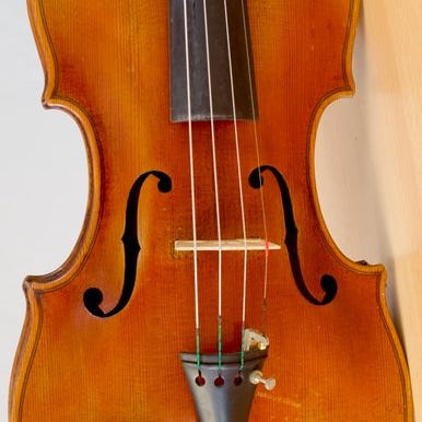 Det er en fuldstørrelsesviolin (samlet længde: 590 mm, krop: 358 mm, øvre bouts: 169 mm; midter bouts: 113 mm; nedre bouts: 210 mm) med stempel indvendigt: