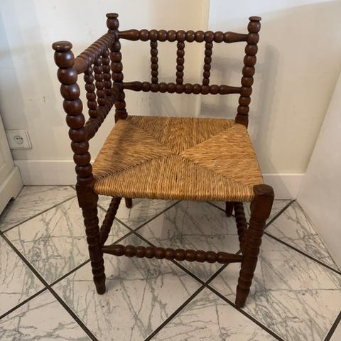 Børnestolen blev placeret i hjørnet på grund af sin form, men den er også meget dekorativ.