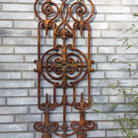 En tung væggrill af støbejern, 61 × 46 cm, vægt over 5 kg, lavet i Europa, dateret 2010–2020, rustbrun finish med udsmykket omløb, kan også bruges som dørmåtte. Klik på den blå "gå til varen" knap, for at købe eller byde på denne vare. Den samlede pris vil blive vist inden du afgiver dit bud.