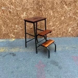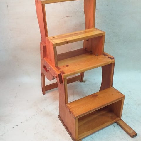 Bibliotekstrappe i engelsk stil fra midten af det 20. århundrede, i massivt træ i mahogniudseende, højde 121 cm, bredde 43 cm, med vertikalt gelænder og trin beflæbet med læder, oprindelse Italien, i god stand med mindre brugsspor. Klik på den blå "gå til varen" knap, for at købe eller byde på denne vare. Den samlede pris vil blive vist inden du afgiver dit bud.