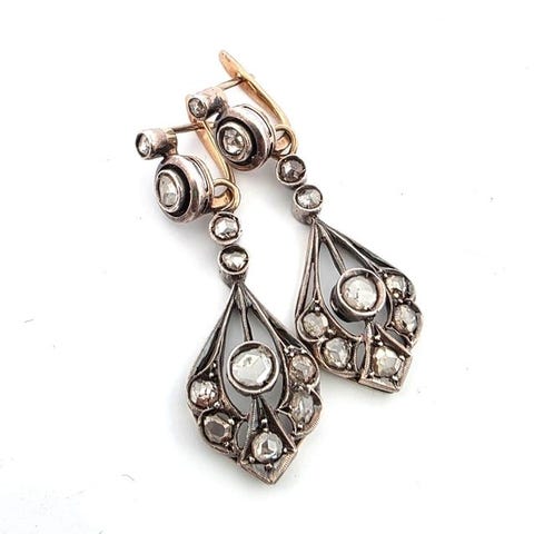 Par Ørestikker i 18 kt gult guld med seks rubiner (fire 6 mm og to 3 mm) i alt 4,90 ct og fire naturlige runde brillantslibede diamanter i alt 0,30 ct, sat i 18 kt gult guld, længde ca. 40 mm, vægt 3,30 g, uden laboratorierapport. Klik på den blå "gå til varen" knap, for at købe eller byde på denne vare. Den samlede pris vil blive vist inden du afgiver dit bud.