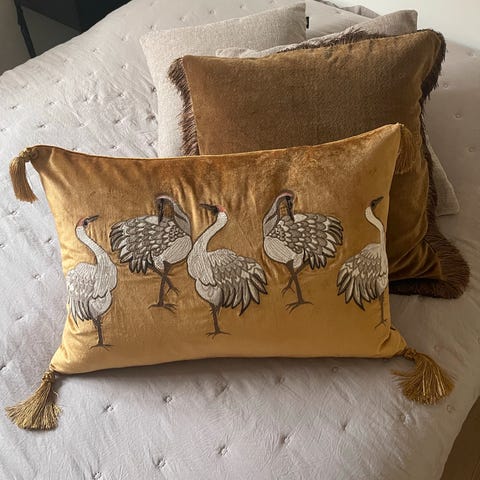 Oprindelsesland: Tyrkiet; Model: Woven tapestry pillows; fire puder på 43 cm × 43 cm af hør, bomuld og silk i næsten ny stand. Klik på den blå "gå til varen" knap, for at købe eller byde på denne vare. Den samlede pris vil blive vist inden du afgiver dit bud.