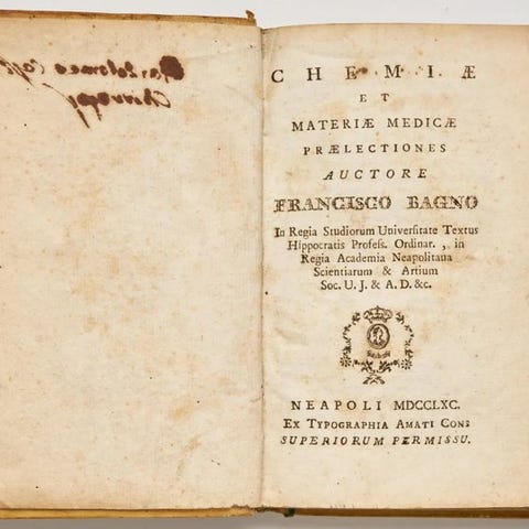 Prestigefyldt opsummering af den videnskabelige verden i det attende århundrede, meget sjældent at finde komplet med alle 36 bind, bestående af essays og erindringer af de vigtigste videnskabsfolk fra perioden, i nogle tilfælde oversat for første gang til italiensk eller i første udgave.