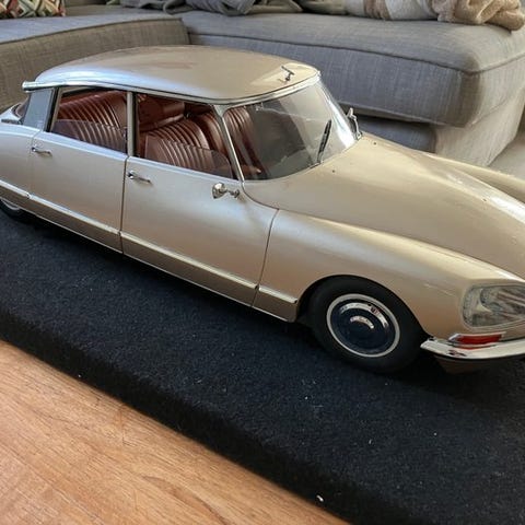 Smuk reproduktion af Citroën 2CV i skala 1/8 som sæt til samling.