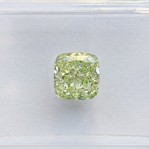 Rund brillantformede diamanter med en glædelig blanding af grøn nuance, fulde af glans og skær.