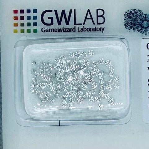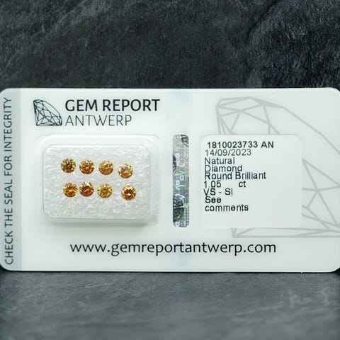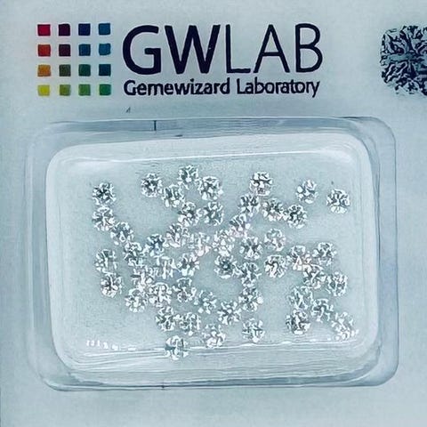 GWLab-certificerede naturlige lyserøde diamanter, 35 runde brillantskårne sten samlet 1,17 ct, farvefint pink, klarhed SI2–I1, laboratorierapport nr. 250006891031, forseglet af laboratoriet. Klik på den blå "gå til varen" knap, for at købe eller byde på denne vare. Den samlede pris vil blive vist inden du afgiver dit bud.