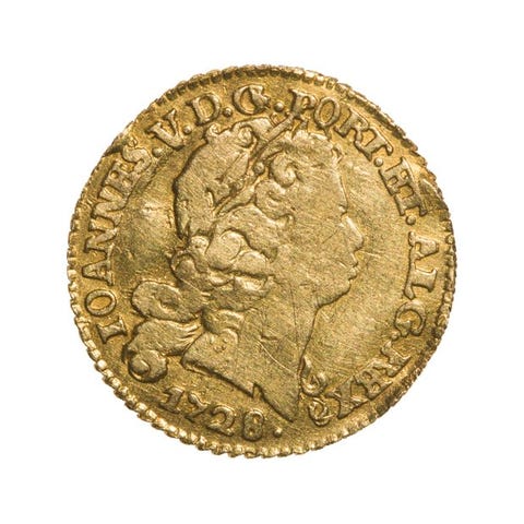 Portugal, 1.000 Reis i guld fra 1855, vægt 1,80 g, diameter 15 mm, præget under D. Pedro V, tilstand aUNC. Klik på den blå "gå til varen" knap, for at købe eller byde på denne vare. Den samlede pris vil blive vist inden du afgiver dit bud.
