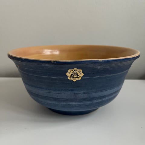 Keramik, Røgild lertøj skål/ blomsterskjuler, Røgild, Danmark, Spændende dansk lertøj fra RØGILD - stor skål - diameter 26 cm, højde 10 cm. Mindre afskalninger i glasur.