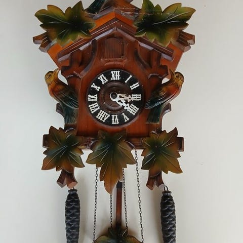 N.B. Uret er i fremragende bevarelsestilstand og inkluderer kun cuckoo uden ornament, pendul og vægte. Fremragende stemmer, lyder rigtig godt, og det fremstår pragtfuldt. Det starter, men stopper. Jeg mener, det bør gennemgås!