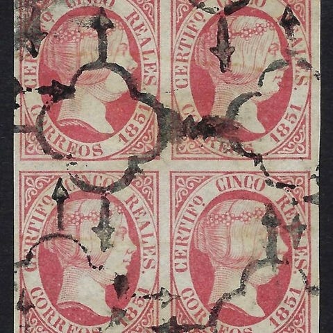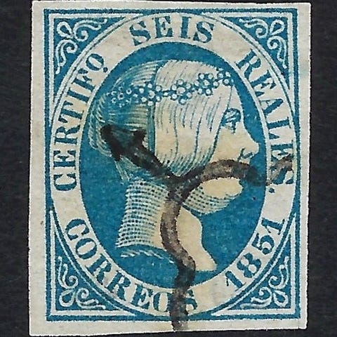 Spanien, 6 Reales Isabel II med certifikat, afpoststemplet fra 1851, Edifil nr. 10, inkluderer ægthedscertifikat. Klik på den blå "gå til varen" knap, for at købe eller byde på denne vare. Den samlede pris vil blive vist inden du afgiver dit bud.