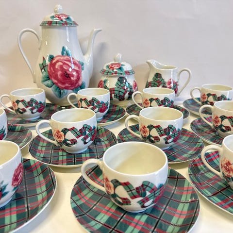 Dette 14-delte sæt i Limoges-porcelæn er et behageligt forslag fra Atmospheria, designet til bordet til desserter og aperitiffer, der kan ledsage kaffe, varm chokolade og meget mere.