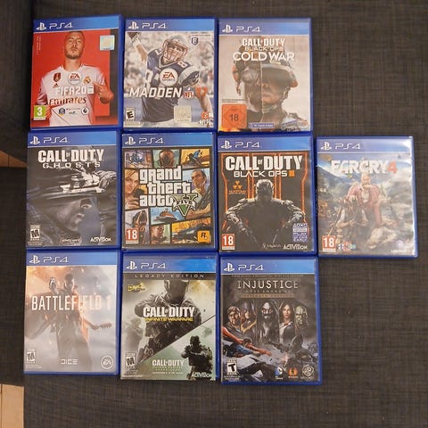 PlayStation 4 - lot, syv nye og fabriksforseglede titler i originalemballagen. Klik på den blå "gå til varen" knap, for at købe eller byde på denne vare. Den samlede pris vil blive vist inden du afgiver dit bud.