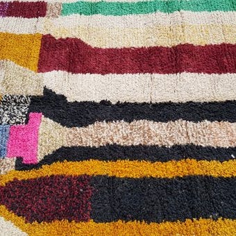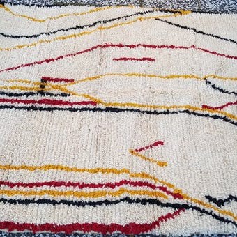 Bring varme, historie og sjæl ind i dit hjem med dette *autentiske Beni Ourain tæppe*, håndlavet af *Berber kvinder* fra de marokkanske Atlasbjerge. Hvert stykke er vævet af *100% naturlig uld*, med *lyse, opløftende farver* og *simple, tidløse designs* inspireret af deres daglige liv og omgivelser.