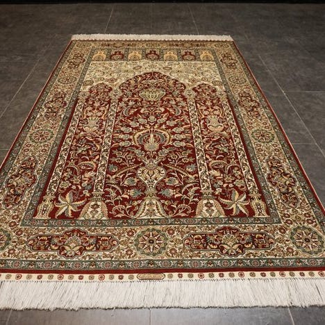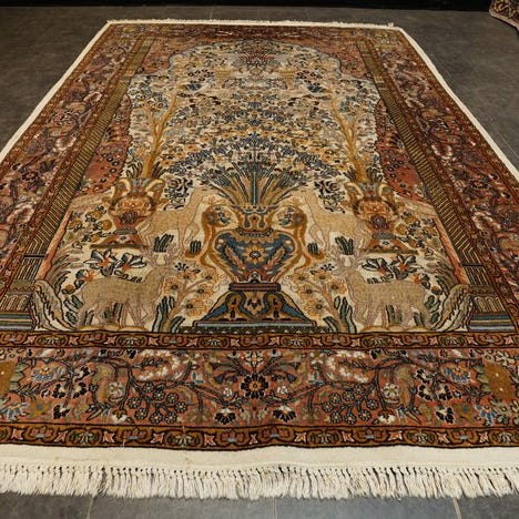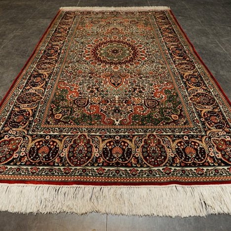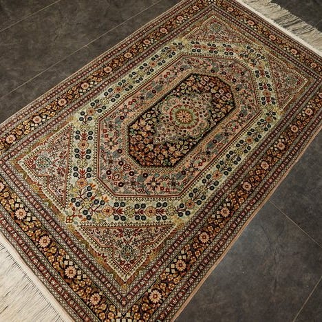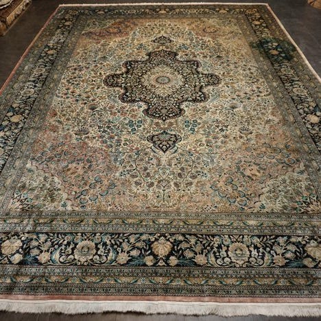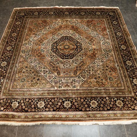 Et smukt håndknyttet originalt kinesisk Gohm silketæppe.