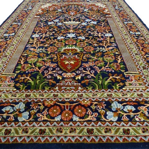 Lahore-designs, håndvævet med persiske knuder, vegetabilske farvestoffer, 100.000 knuder pr. kvadratmeter, ulden er håndspundet og kommer fra bjergene i Afghanistan, med den største egenskab at være meget slidstærk samtidig med at være blød og sødmefuld. Dette tæppe varierer i små detaljer fra en enhed til en anden. Der findes ikke to ens tæpper. Det er et meget langt tæppe på over 12 meter.
