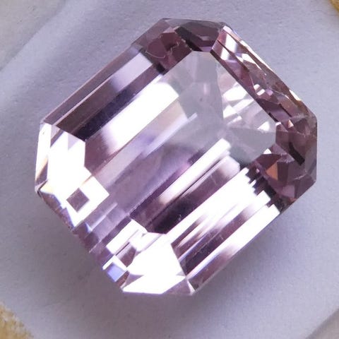 Naturlig kunzit ædelsten, 1 sten, 51,65 ct, lyserød-lilla, octagonalt trin-sleben, øje-ren og gennemsigtig, normalt opvarmet og irradieret uden bevis for behandling, ICA GemLab certifikat nr. 175130. Klik på den blå "gå til varen" knap, for at købe eller byde på denne vare. Den samlede pris vil blive vist inden du afgiver dit bud.