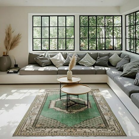 Et håndlavet grøn vintage tæppe fra Tyrkiet, model Green vintage, måler 285 cm x 185 cm, i meget god stand, professionelt rengjort og med certifikat for ægthed. Klik på den blå "gå til varen" knap, for at købe eller byde på denne vare. Den samlede pris vil blive vist inden du afgiver dit bud.