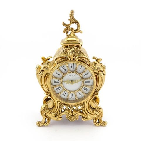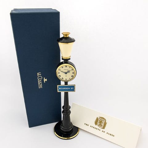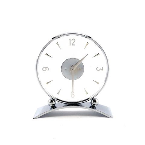 Smuk ekstremt sjælden lille bordur fra Jaeger i krombelagt, ottetakket metalhus på en sort glas sokkel.
