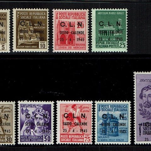 Comitato di Liberazione Nazionale - Aosta 1944 - minifølgesedler med 10 eksemplarer hver, 8 perforerede, 8 ikke-perforerede. Sassone 2025 pris € 4.815. En integreret og væsentlig del af lot, ekspertvurdering 'Zappala' den 19. september 2025.