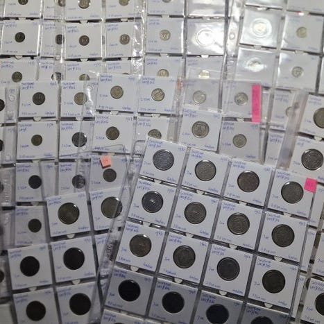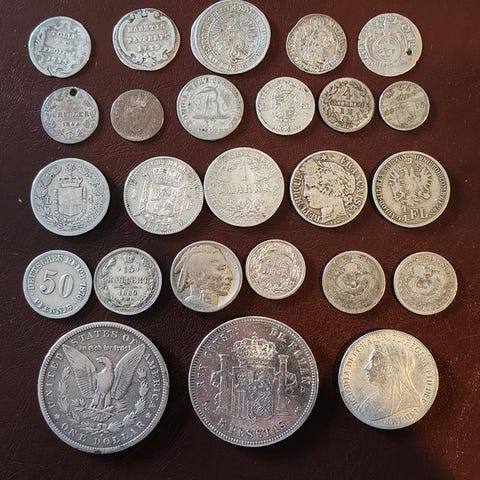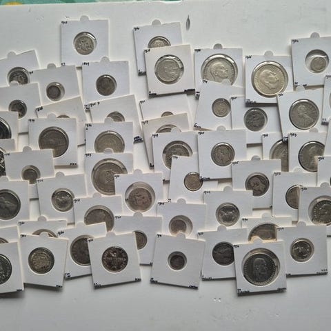 Mere end 40 sølvmønter fra forskellige lande - det 20. århundrede.