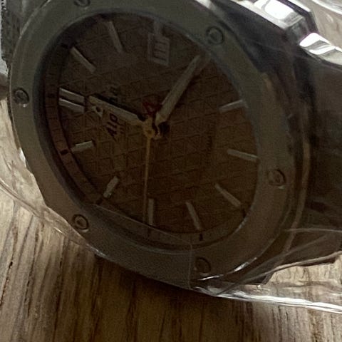Skive: Sort. 2 sølv-under-skiver. Guilloché. Lyssatte indeks. Lyssatte visere.