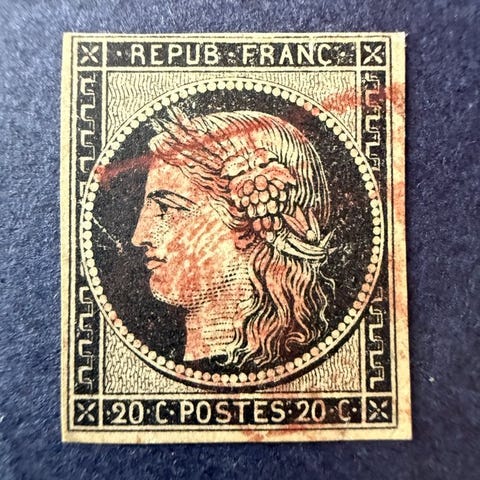 Oprindelse Frankrig Yvert 2 Cérès 15c grøn oblitéret TB, tilstand TB, velegnet til specialiserede samlere. Klik på den blå "gå til varen" knap, for at købe eller byde på denne vare. Den samlede pris vil blive vist inden du afgiver dit bud.