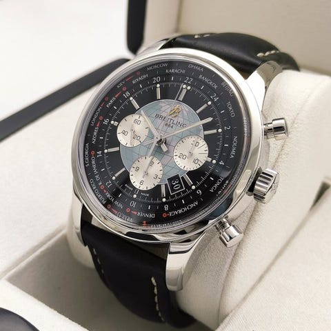 Breitling Transocean Unitime Pilot's Chronograph AB0510U9/C879, herreur i stål automatisk bevæger, kasse 46 mm, blå urskive, stålrem, original æske og papirer, international garanti, vandtæthed 100 m, kronograf, dato og verdens tid, ubrugt. Klik på den blå "gå til varen" knap, for at købe eller byde på denne vare. Den samlede pris vil blive vist inden du afgiver dit bud.