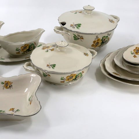 Service med fin porcelæn fra den første halvdel af det 20. århundrede. Signeret EPIAG, i sen Art Déco-stil og -æra.