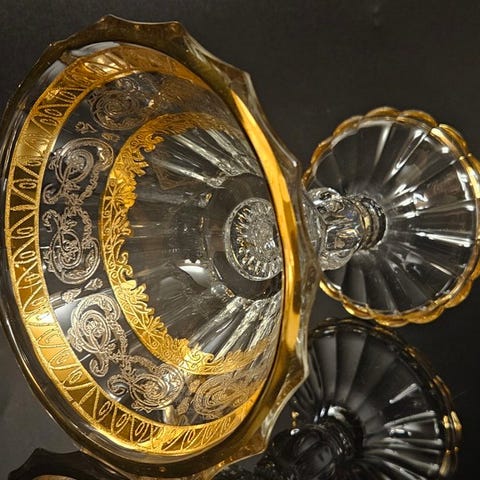 Finpudset med dekor i guld og platin, håndlavet af mestre glasmestre håndværkere i henhold til Murano-skolen, et ægte kunstværk.