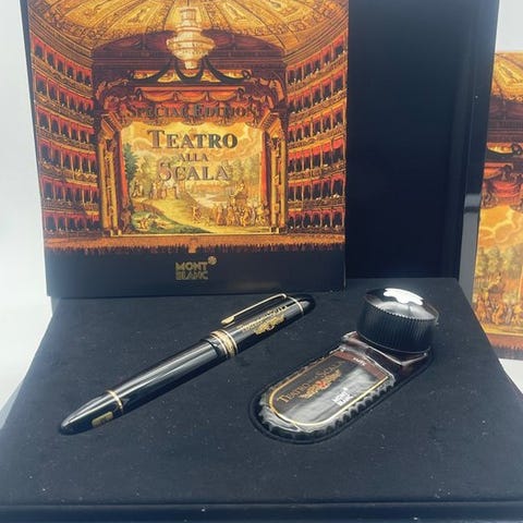 Montblanc Donation Pen 2000 Yehudi Menuhin fyldepen i sort resin. Kommer med æske. Klipsen er formet som en violin, og pennen har en 18 karat guldspids med en særlig indgravering. Krop og låg er lavet af fin, blank sort resin med guldbelagte detaljer. Da det er en begrænset udgave, der ikke længere produceres, har den en betydelig samlerværdi. Se nøje på billederne, da de afspejler den smukke virkelighed.