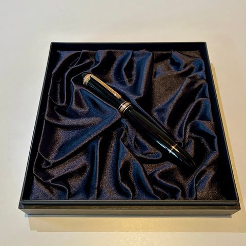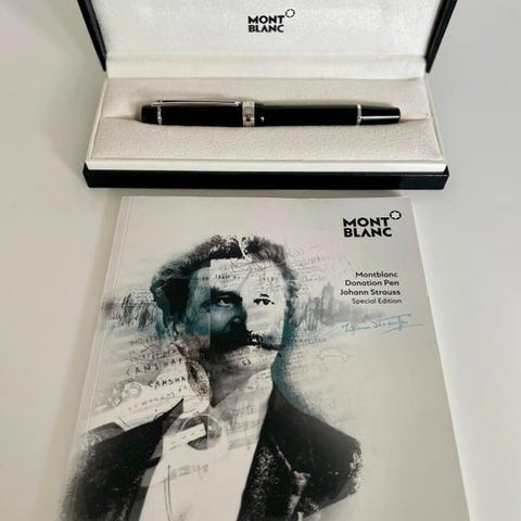 Montblanc Donation Pen 2000 Yehudi Menuhin, fremstillet i Tyskland, sort ædelharpiks med guldbelægninger, 18 k guld nib med særlig gravering, violinformet clip, leveres med æske; begrænset udgave uden for produktion og samleverdi, i god brugt stand med mindre aldersmærker og pletter og i funktionsmæssig stand. Klik på den blå "gå til varen" knap, for at købe eller byde på denne vare. Den samlede pris vil blive vist inden du afgiver dit bud.
