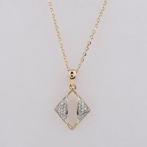 14K gult guld 0,50 ct diamant V-formet vedhængskæde
