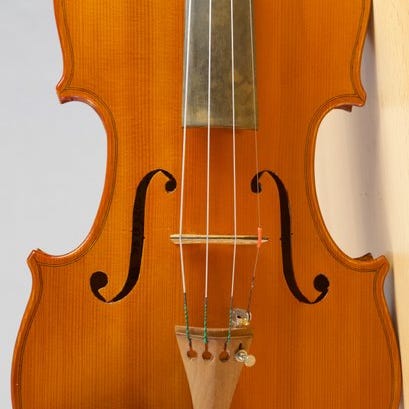 Det er en violin i fuld størrelse (fuld længde: 592 mm, krop: 359 mm, øvre del: 166 mm; midterste del: 115 mm; nedre del: 206 mm) med etiket:
