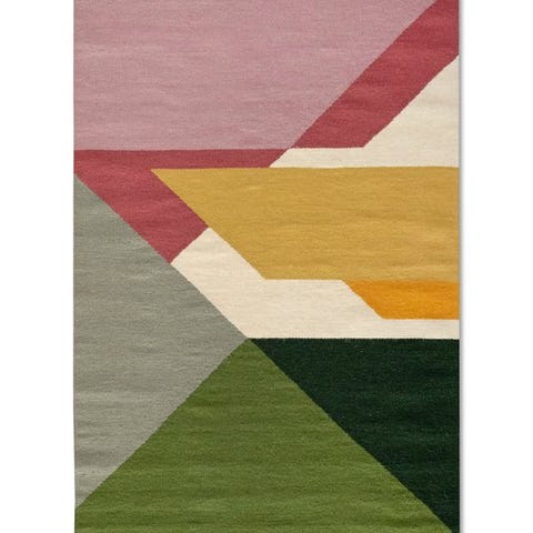 Kilim Labyrinth, 130 x 80 cm, håndvævet uld-on-cotton tæppe fra Nilo Kilim, Egypten, 21. århundrede, i meget god stand og professionelt renset, vægt 1,5 kg, flerfarvet grøn, rød, gul og lyserød. Klik på den blå "gå til varen" knap, for at købe eller byde på denne vare. Den samlede pris vil blive vist inden du afgiver dit bud.