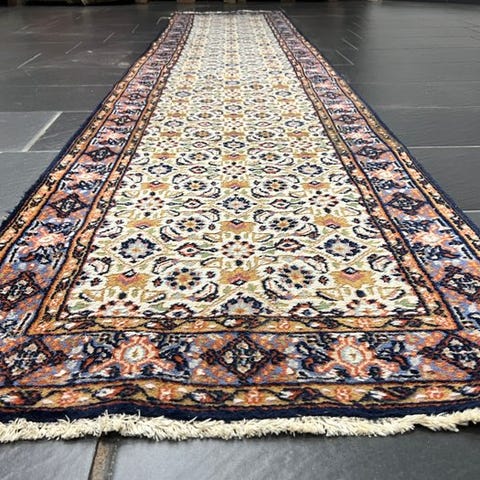 Origin: Unik håndknyttet Indo Moud-tæppe med smukke farver.