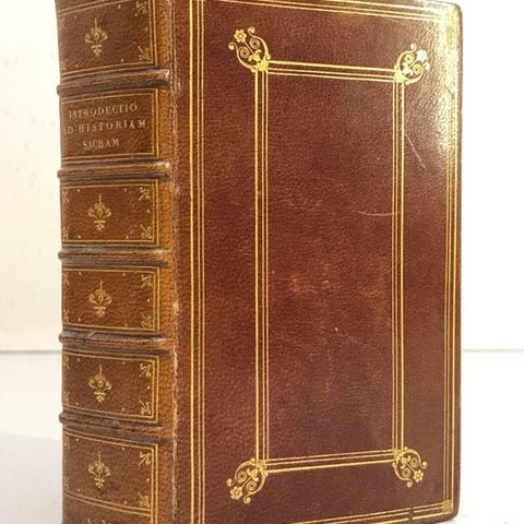 Solid indbinding med nogle snavspletter, små huller og en brun plet ved ryggen. Let gulligt papir, sjældne spredte brunpletter.