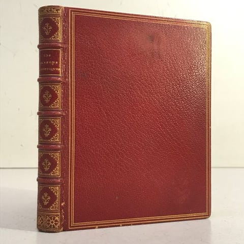 Rygbøger fra tiden udført i brun halvskind med hjørner, dobbelt streg langs kanterne og hjørnerne, ejernavn præget i guldbogstaver i øverste hjørne [E. Schwartz Vve Viton], forsider i percaline, ryg med 5 nerver pyntet med blomsterdekorerede felter, med titel og volumenummer. Guldede snit.