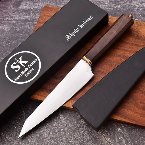 Dette er et mesterværk fra Shaw Knives – Gyuto kokkekniv til professionelle kokke. Shaw Knives har været med i dette i de sidste 29 år og producerer håndsmedede knive af høj kvalitet.